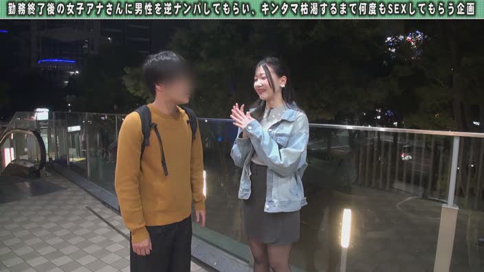 童顔で透明感抜群の某関東新人アナの鈴木さん!まだ私服もラフな感じが親近感!そんな鈴木アナに逆ナンパに挑戦してもらいます。中々肝が据わっているようで始めて男性に声を掛ける時も淫語バンバン使って積極的にグイグイいってます!お互い戸惑いつつ頑張ってリードする鈴木さんガッチガチに緊張している男性の全身を舐め回して早々とチ〇ポをガッチガチにするまぁまぁな手練れの鈴木さんwチ〇ポを取り出しエロ実況をしながらチ〇ポを優しくシゴいて男の人の感じている顔を見るとスイッチ入っちゃうんですよ!と笑顔でチ〇ポをパクっ!咥え上裸になり色白な美乳を披露!綺麗に処理された無毛マ〇コをご開帳してくれます!我慢汁溢れるチ〇ポを見た鈴木アナはじゃ早速入れてみちゃう?と跨り生チ〇ポを騎乗位で挿入!!大人しめのSEXかと思いきや淫語実況をしがらどんどん腰振りが加速してきて小刻みでちょっパヤな腰使いで一気にアクメまで登り詰めついでに潮ピュッピュw鈴木さんこんな童顔なのに騎乗位が秀逸でドエロでイキまくってます。正常位でも大股パッカーンと開いてチ〇ポを根元深くまで咥え込みイキまくり私だけさっきいっぱいイっちゃったからイケる時イっていいよ!と可愛く言ってくるもんだから触発されてガンガン突きまくりガッツリ中出し!お互い全く物足りないようで、すかさず再度挿入して2回戦突入!マ〇コ気持ちいい?など煽り上手な鈴木さん腰を浮かせながら生チ〇ポの感触を堪能して感じまくり2発目の準備を感じ取った鈴木さんはアンアンっ!またで出ちゃう?あ〜イっちゃう!イっちゃう!と中出し射精と一緒に絶頂!二人でシャワー浴びにいったところを覗いてみたらまだ元気なチ〇ポに嬉しそうな鈴木さんを指マンで大量潮吹きアクメをさせてあげたらお礼にマッハ手コキをしてくれてザーメンを口と顔で受け止めてくれました。出演:鈴木アナ(22)